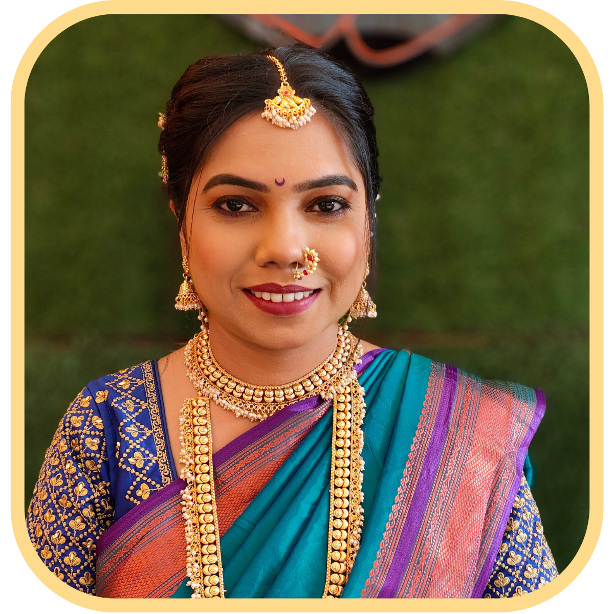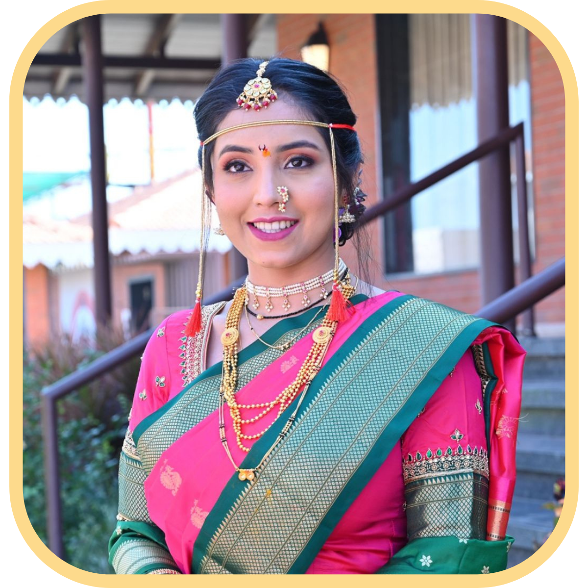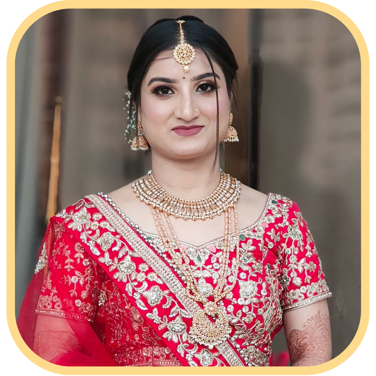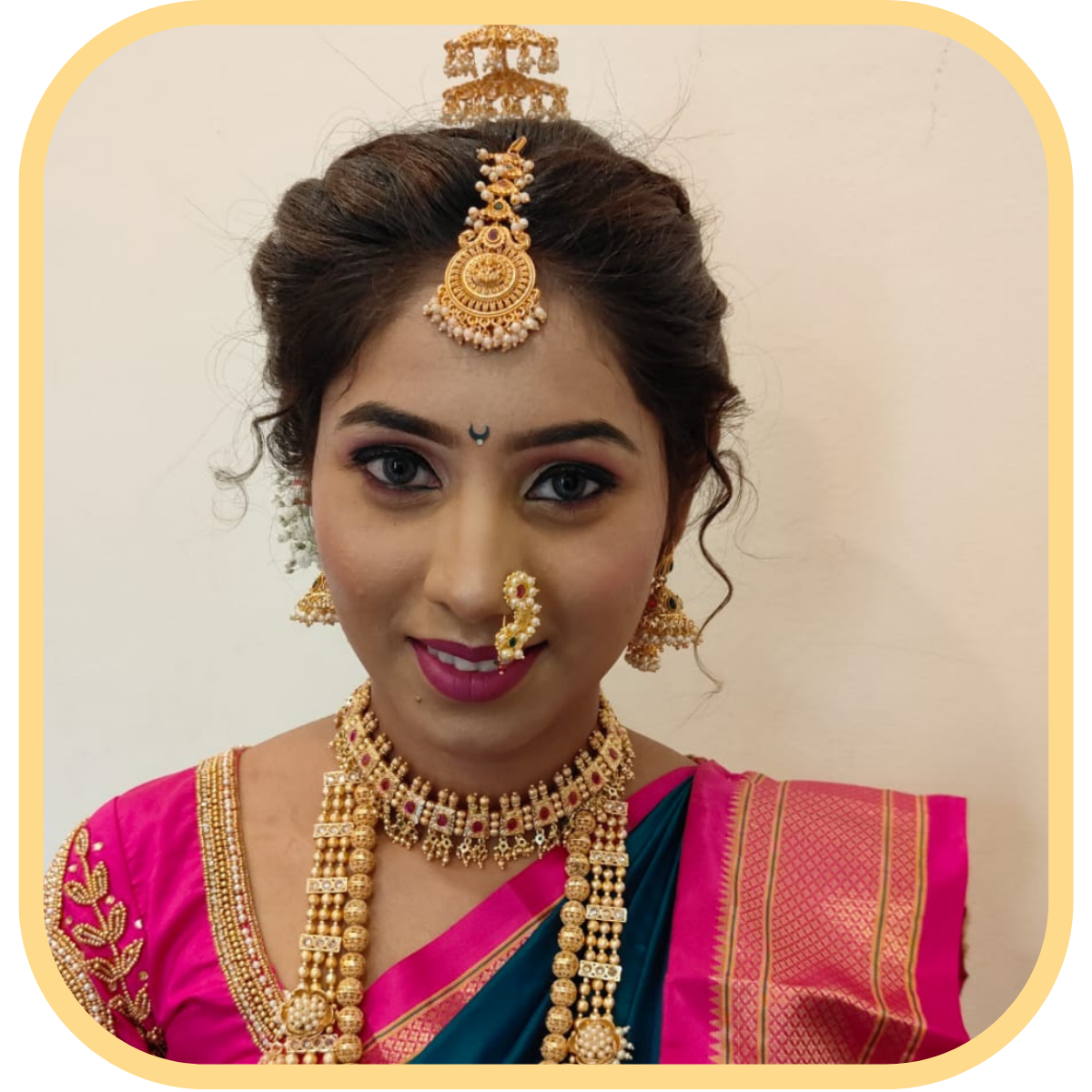 I’m Vrunda, a professional bridal makeup artist based in Navi Mumbai, specializing in HD bridal makeup & hair styling for modern brides who want an elegant, refined, and long-lasting wedding look. Brides across Navi Mumbai, Mumbai, Thane, and destination weddings trust my work for natural yet camera-ready bridal transformations.